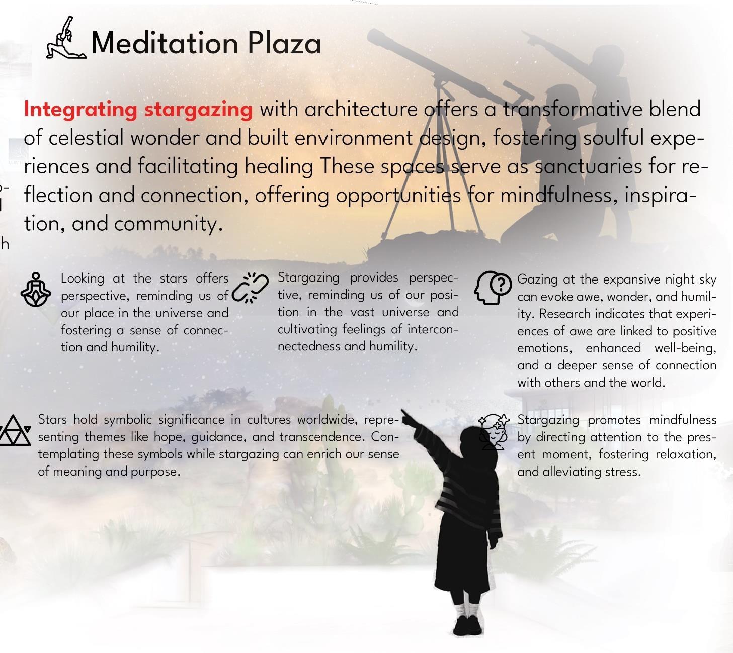Establishing a community plaza and a library in the rehabilitation care center in Aswan nurtures social sustainability by enhancing the therapeutic environment for people with PTSD and ensuring that there is a firm, inclusive community. This will stimulate growth in social, cultural, and educational development in an environment that will make the rehab centre and the local community long-term able and sustainable