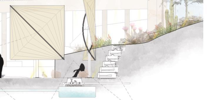 Establishing a community plaza and a library in the rehabilitation care center in Aswan nurtures social sustainability by enhancing the therapeutic environment for people with PTSD and ensuring that there is a firm, inclusive community. This will stimulate growth in social, cultural, and educational development in an environment that will make the rehab centre and the local community long-term able and sustainable.