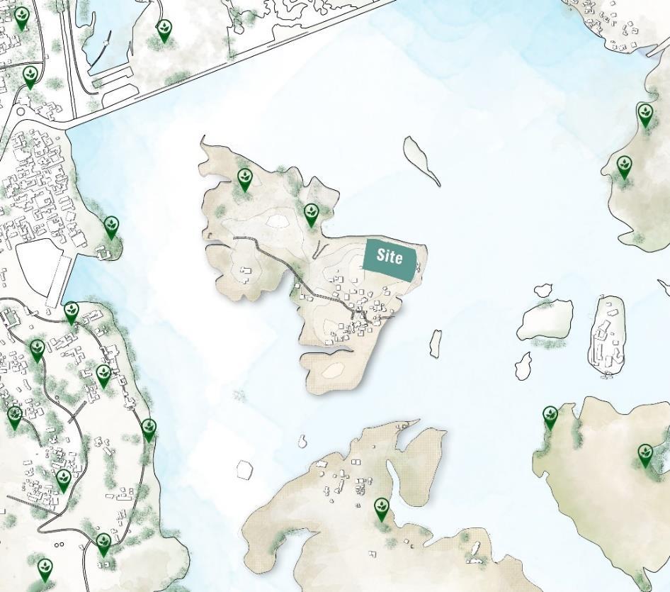 Fig 2 39 accessibility to the site from the nearby shores (Illustrated by Authors ,2023)