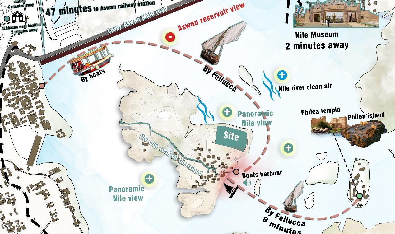 Fig. 2.20 . Botanical Island in Aswan. Retrieved from google maps (2023), illustrated by authors (2023).