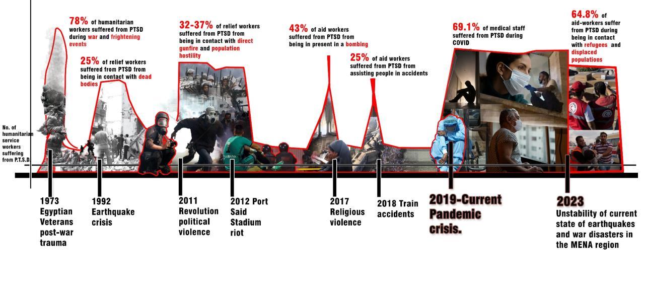 Fig 1 3 : shows A timeline graphical representation of incidents were human aid workers were involved and greatly affected by over the past 50 years ( by authors , 2024 )