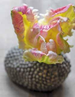 speelt vorm een belangrijke rol. Daarbij wordt gekozen voor opvallende vazen die uit verschillende elementen lijken opgebouwd. Bijvoorbeeld kokervormig aan de onderkant, bolvormig in het midden en trechtervormig aan de bovenkant. De vazen hebben een gladde structuur en zijn van keramiek of glas. Door verschillende tulpensoorten en kleuren met elkaar te mixen ontstaat vanzelf een vrolijke sfeer. Bovendien krijgt het spel met vorm een extra dimensie: tulpen groeien nog een beetje door in de vaas zodat het voorjaarsboeket dagelijks van vorm verandert.