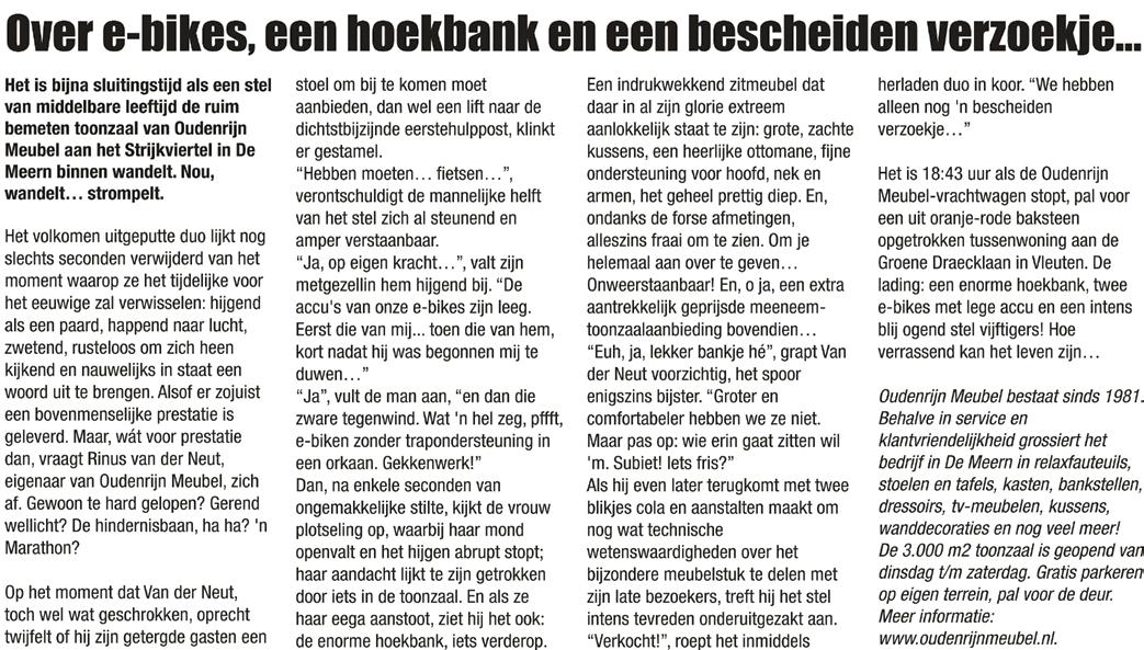 Voor plaatsing in ‘Zicht Op West Utrecht’ is onze redactie altijd op zoek naar interessante evenementen, voorstellingen of andere mooie nieuwtjes. Heeft uw club, vereniging of organisatie een boeiende activiteit waarvan onze lezers op de hoogte moeten worden gesteld? Schroom dan niet en laat het ons weten!