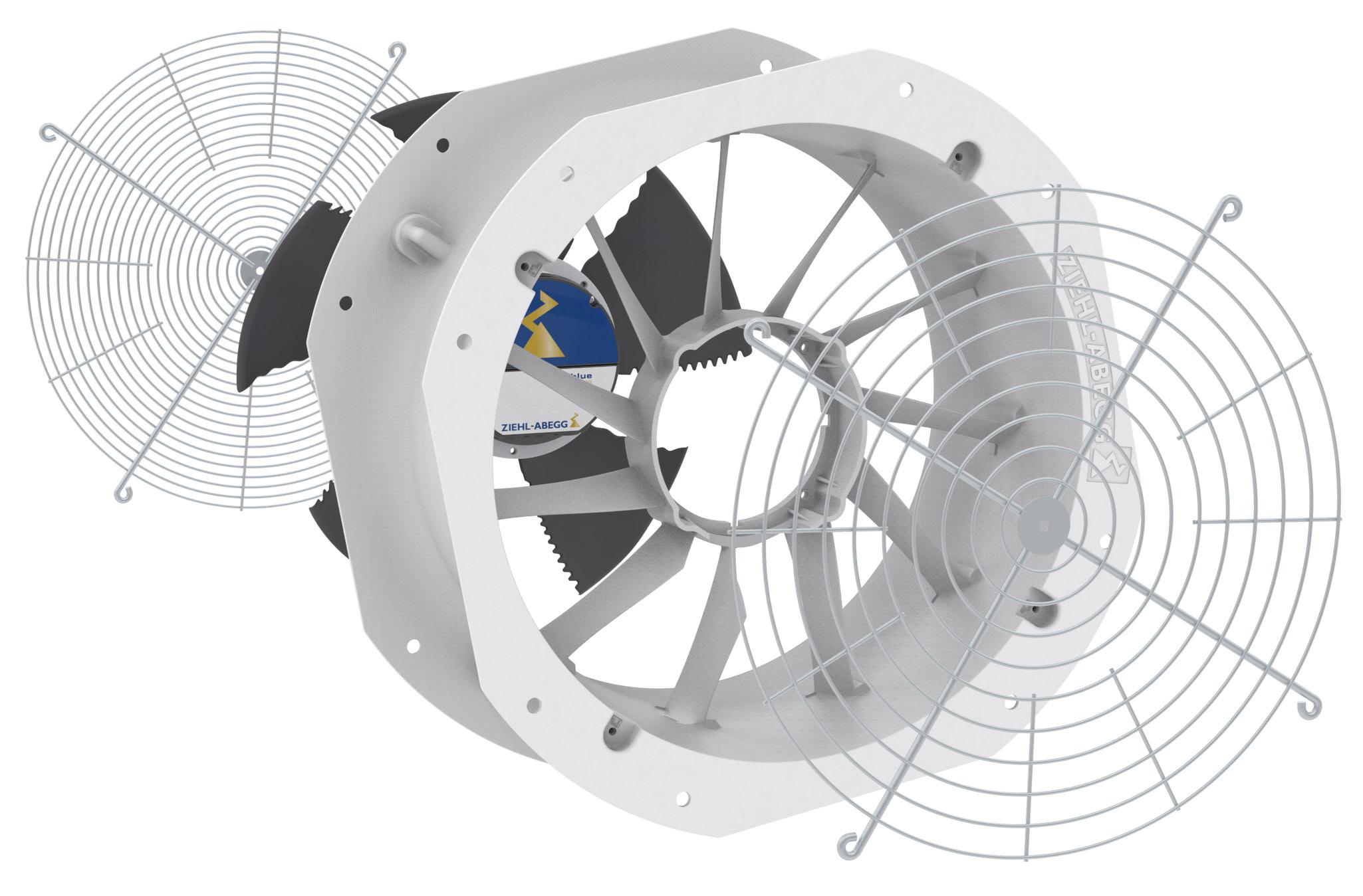 aanpasbaarheid en een hoge mate van flexibiliteit. Door het gebruik van hoogwaardige composieten is de nieuwe generatie van ZIEHL-ABEGG-kasventilatoren aanzienlijk lichter dan vergelijkbare systemen van metaal. Dankzij het lagere gewicht van het systeem is het extra gewicht op de kasconstructie licht. Het ontwerp maakt een eenvoudige uitgebalanceerde montage mogelijk.