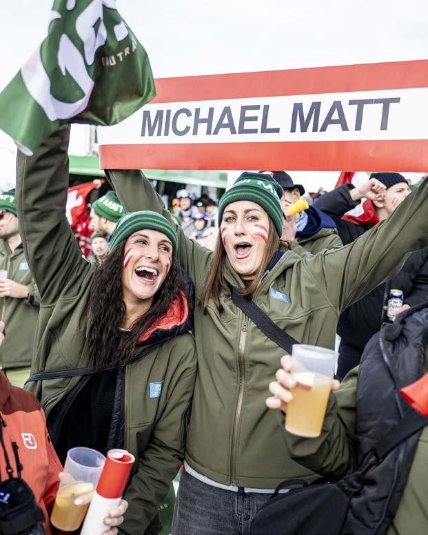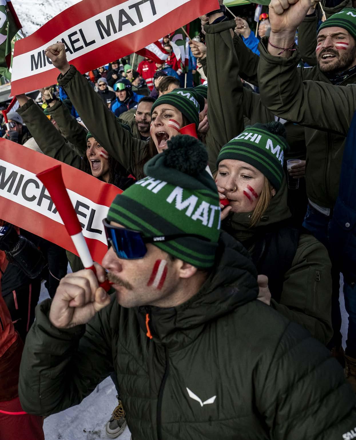 Man fährt richtig mit“, beschreibt Daniel Matt, Fanclub-Obmann, die Momente, bevor SlalomSpezialist Michael Matt ins Rennen geht. Das „Kitzbühel-Feeling“, die berauschende Kraft der Geschwindigkeit, zieht jedes Jahr aufs Neue nicht nur den Fanclub, sondern auch die Tausenden von Fans an der Strecke in seinen Bann.
