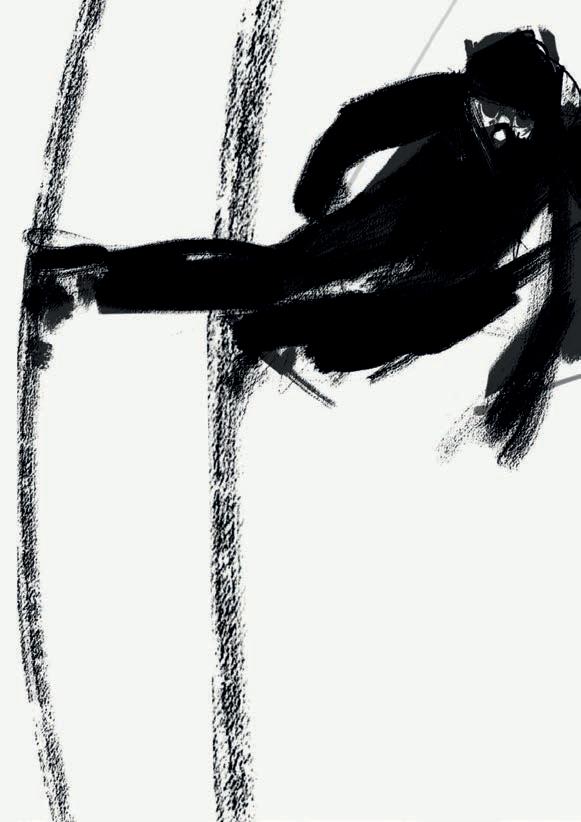 Der Künstler Golif, Gewinner des diesjährigen Plakatwettbewerbs, überzeugt mit seinem Werk auf eine denkbar einfache, radikale und beeindruckende Art und Weise. Die schnellen Striche unter den Beinen des Rennläufers könnten die Skier, die Spur oder beides sein.