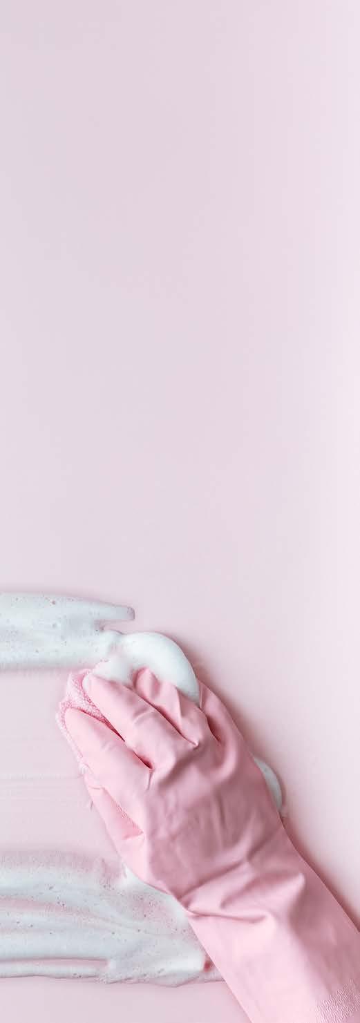 Bei Reinigungsmitteln sollte man darauf achten, dass sie biologisch abbaubar sind und die Inhaltsstoffe aus möglichst pflanzenbasierten und regionalen Quellen stammen. Der Einsatz von Produkten ohne künstliche Duft- und Farbstoffe hilft außerdem Gästen, die empfindlich darauf reagieren oder sogar allergisch sind. Aufwändige Zusatzreinigungen lassen sich in Verbindung mit einem aktuellen Trend vermeiden: Minimalismus. Weniger und gezielte Dekorationen wirken aufgeräumter und lassen sich einfacher reinigen.