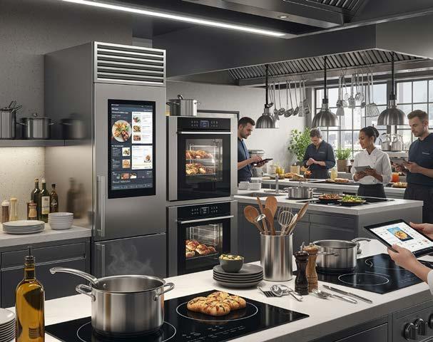 Küchengeräte miteinander zu verbinden und miteinander abzustimmen. So ist es möglich, die Temperatur innerhalb eines Backofens automatisch regulieren zu lassen. Dieser kann in weiterer Folge eine Warnung senden, wenn sich die Temperatur verändert oder außerhalb des sicheren Bereichs liegt. Die Küchengeräte können so in Echtzeit überwacht und gesteuert werden. Mithilfe einer automatisierten Bestandsverwaltung können Geräte einen knappen Vorrat erkennen und bei Bedarf automatische Nachbestellungen auslösen. Diese Technologie hilft unter anderem dabei,