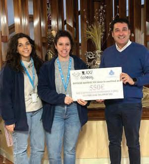 La donación se ha repartido a partes iguales. Por un lado, 550 euros han sido destinados al Centro San Juan de Dios para el desarrollo de acciones sociales vinculadas a su comedor social. El importe fue entregado a María Carnero y Laura Martín, trabajadoras del comedor social, que agradecieron el apoyo