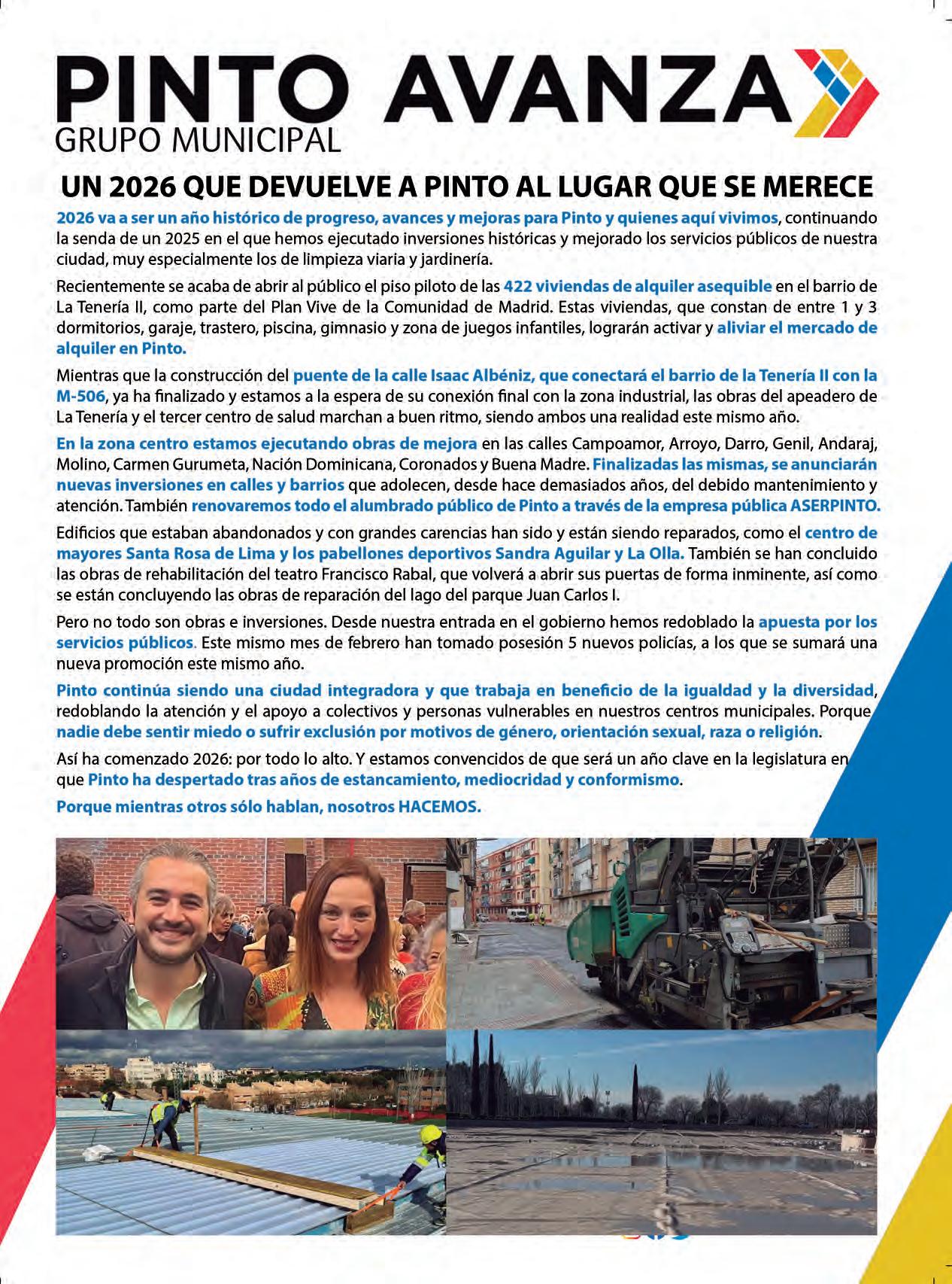 partidos políticos”. Ciertamente se tuvieron en cuenta algunas aportaciones de PSOE y Unidas Pinto-Podemos. De hecho, la aprobación de la tasa fue posible gracias a la absteción de la confluencia. “Exigimos incluir una serie de compromisos para 2025 que no se han cumplido”, explicó la formación. Más Madrid recordó que en ciudades como Palencia o Toledo los recibos no llegan a los 60 euros, mientras que en Pinto la media supera los 100 euros.