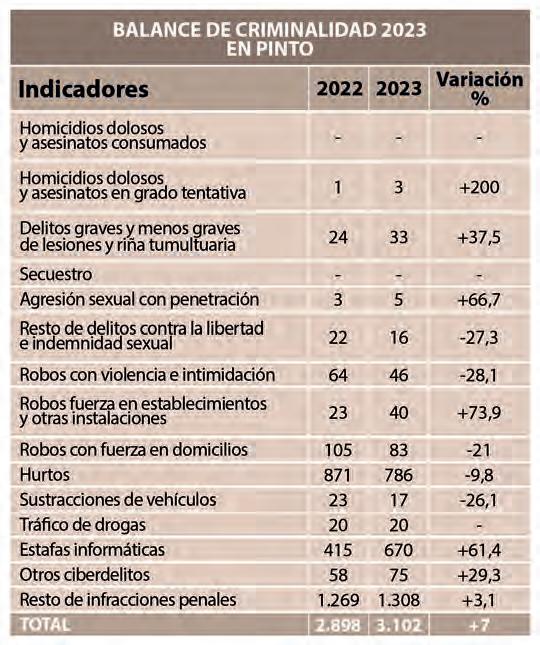El Balance de Criminalidad correspondiente al cuarto trimestre de 2023 señala que en Pinto se cometieron 3.102 infracciones frente a las 2.898 del año