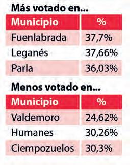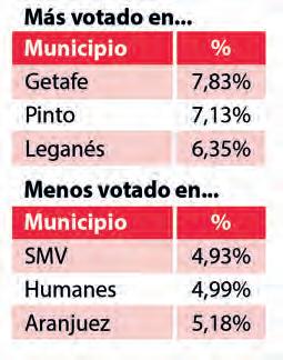 En esta ocasión, Leganés, Getafe y Fuenlabrada funcionaron como el auténtico cinturón rojo de la zona sur ya que fue allí donde PSOE, Sumar y Podemos obtuvieron sus mejores resultados. La derecha, en cambio, encontró en Valdemoro su bastión: fue el que más votó a PP y Se Acabó La Fiesta de entre los doce municipios del entorno y el segundo que respaldó a Vox en mayor medida.