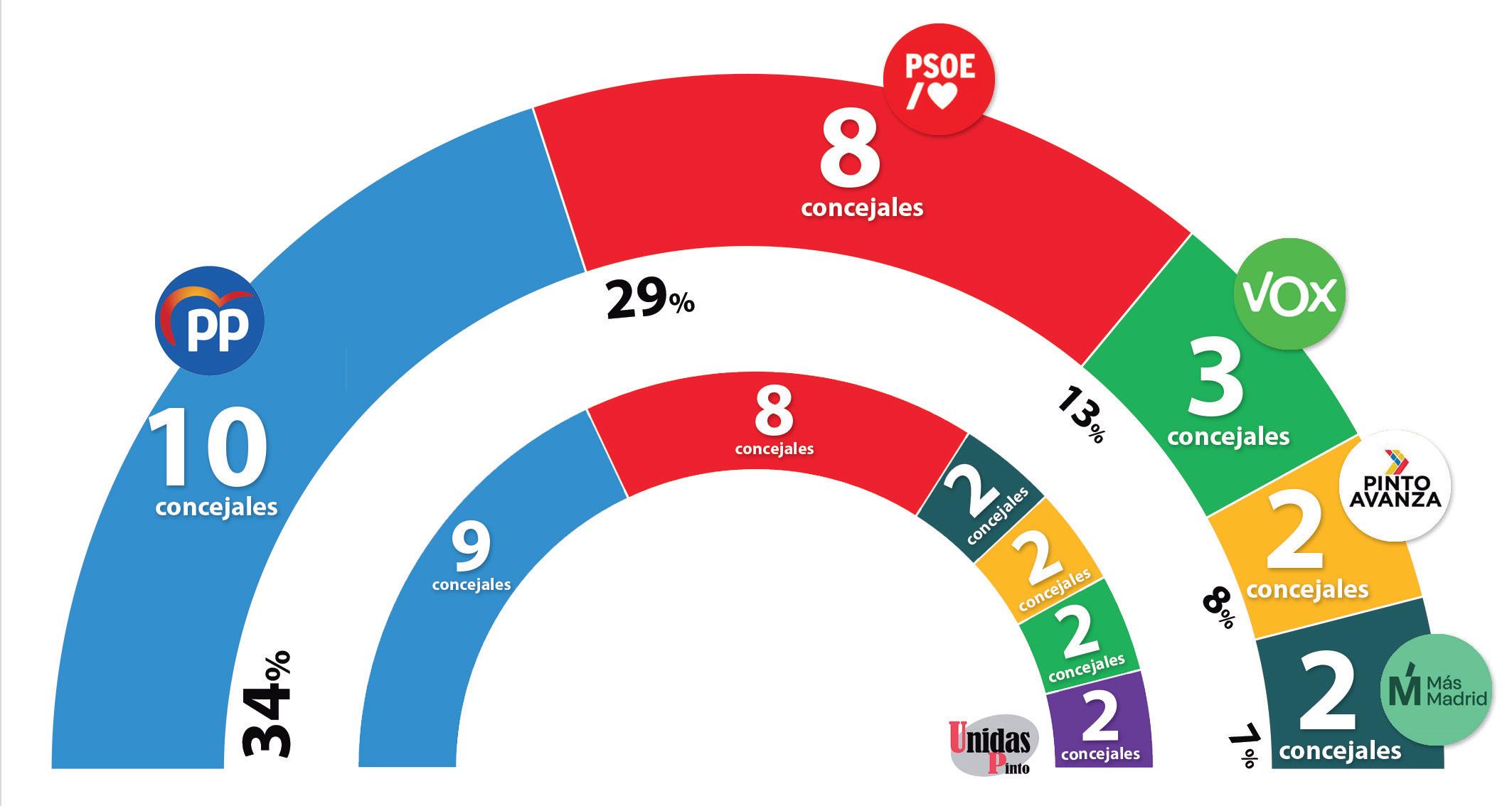 Los principales partidos de la izquierda, PSOE y Más Madrid, así como Pinto Avanza, mantienen la intención de voto de 2023 y podría conservar su representación actual e incluso mejorarla en algún caso. Es todo lo contrario a lo que podría ocurrir con Unidas Pinto-Podemos que, a tenor de la foto fija que refleja la encuesta realizada por ZIGZAG este mes de noviembre, desaparecería de la corporación municipal. Dos años son un mundo, sobre en política, pero la percepciónpositiva de los vecinos de Pinto sobre la gestión del Gobierno actual es ciertamente reveladora. Más cuando todavía hay grandes cuestiones pendientes que llegarán en los próximos años como la reapertura del teatro, la construcción del tercer centro de salud y la estación de La Tenería y la finalización de las obras de Pinto en Verde.