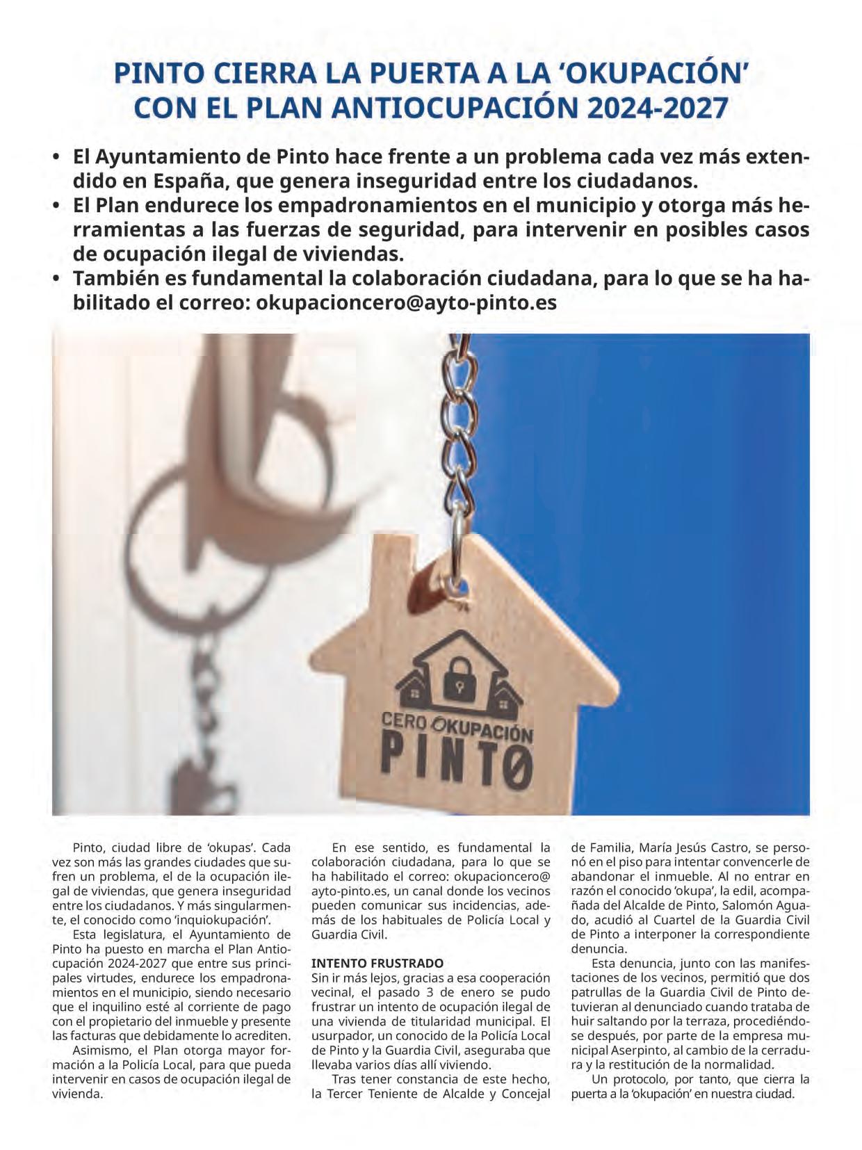 Desde el Gobierno ha aprovechado para felicitar a todos los intervinientes y recordar que todas las denuncias pueden canalizarse, además de contactando con las fuerzas de seguridad, a través del correo electrónico okupacionescero@ayto-pinto.es.