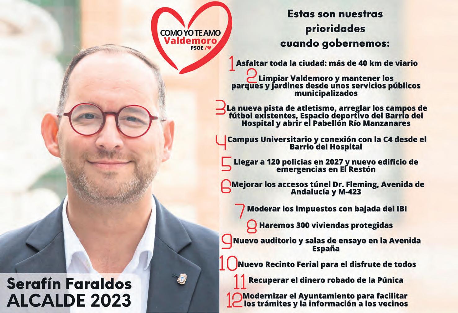 reconvertir los antiguos juzgados en un centro de día y la peatonalización de la zona centro. Todo ello para conseguir “sacar a Valdemoro del pozo en el que nos han metido los gobiernos anteriores”.