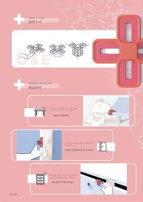 + CC 由醫療用矽膠構成,內部使用可彎折單一方向的金屬,有可彎 折後又可回復原狀的特性,將鄰近的關節處彎折,使扣貼於桌角處, 便可達到減少桌角對於孩童撞擊間的傷害