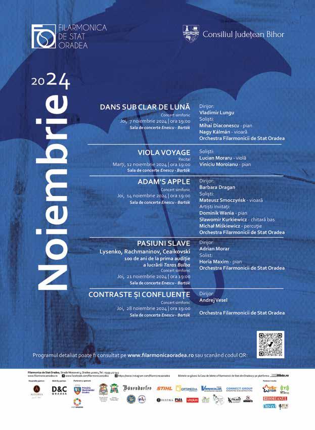 ȘI NOPȚI - EDIȚIA DE ORADEA apare lunar - gratuit | nr. 11/2024 | perioada 1 - 29 noiembrie 2024 0725 00 66 99 oradea@zilesinopti.ro www.zilesinopti.ro/oradea