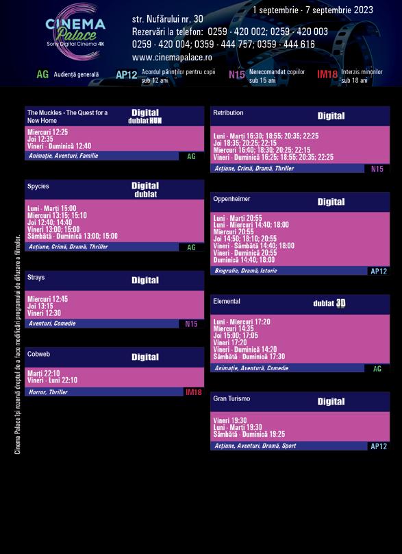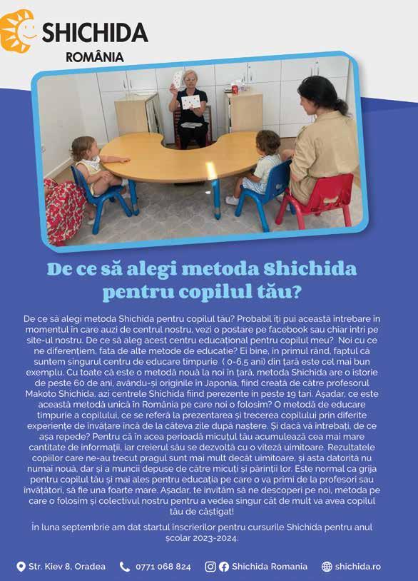 ZILE ȘI NOPȚI - EDIȚIA DE ORADEA apare lunar - gratuit | nr. 08/2023 | perioada 1 - 30 Septembrie 2023 0725 00 66 99 oradea@zilesinopti.ro www.zilesinopti.ro/oradea