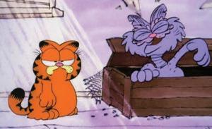 Cu toate că motanul se apropie de 50 de ani, biografia lui Garfield are încă destule zone gri. Cu excepția unor cameo-uri în benzile desenate, mama vedetei nu și-a făcut apariția în mod notabil decât o singură dată, într-o animație TV din 1983, Garfield on the Town, în care, rătăcit prin oraș, cu o bandă agresivă de mâțe vagaboande pe urmele sale, Garfield se refugiază accidental într-un imobil părăsit ce se dovedește a fi adăpostul celei care i-a dat viață, ba, mai mult de-atât, a întregii familii, fiindcă astfel face cunoștință