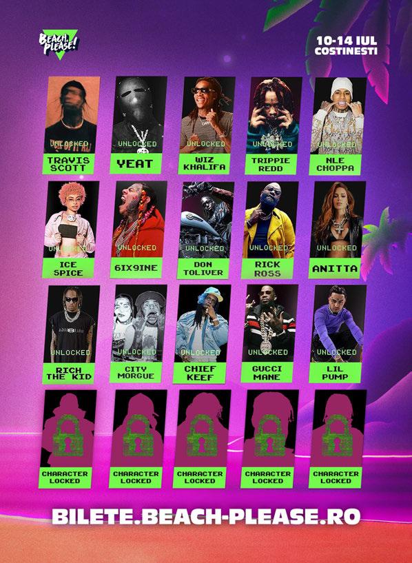 Travis Scott, pe numele său real Jacques Berman Webster II, este un cunoscut rapper, compozitor şi producător muzical american. A devenit cunoscut pe plan internaţional pentru stilul distinctiv de a face rap şi pentru colaborările sale cu alţi artişti renumiţi. Și-a început cariera muzicală în 2008 şi a câştigat popularitate cu mixtapeurile sale, cum ar fi „Owl Pharaoh” şi „Days Before Rodeo”, iar albumul de debut, „Rodeo”, lansat în 2015, a fost un succes comercial şi critic, iar de atunci a continuat să îşi consolideze poziţia în industria muzicală. Printre cele mai cunoscute piese ale sale se numără „Sicko Mode”, „Goosebumps”, „Antidote” şi „Highest în the Room”. De-a lungul carierei sale, Travis Scott a colaborat cu numeroşi artişti de top şi a fost recunoscut pentru influenţa sa asupra culturii hip-hop şi a modului în care îmbină elemente din rap, trap şi rock în muzica să. El va fi prezent anul acesta, pentru prima dată în România, pe scena festivalului Beach, Please! din Costineşti, cel mai mare festival dedicat culturii urbane din Europa de Est.