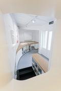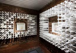 În pivniță regăsim o imagine consacrată a raspelului pentru sticle de vin, reinventat atât ca și cromatică și textură, cât și în privința conținutului. Locul licorii îndrăgite încă din secolele trecute este luat de scrierile pe acest subiect. Fiecare etichetă păstrează un vers din cărțile dedicate diverselor situații în care ne poate pune vinul. Cromatica simplă, austeră și puterea albului omniprezent în interiorul muzeului au rolul de a pune în lumină atât fizic, cât și metaforic obiectele expuse și creează o senzație de deschidere a spațiului, altfel îngust.