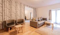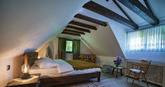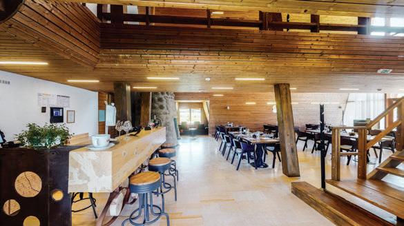 Atât la parter, cât și la nivelul etajului și a mansardei, ambele în volumul învelitorii, sunt amplasate camerele de cazare și apartamentul. Camerele de la nivelul parterului au acces direct către exterior, în timp ce spațiile amplasate la nivelurile superioare beneficiază de formele organice ale lucarnelor, prin care se poate admira peisajul. Ansamblul este completat cu spații dedicate conferințelor și facilități de petrecere a timpului liber în natură, în așa fel încât experiența să fie completă.