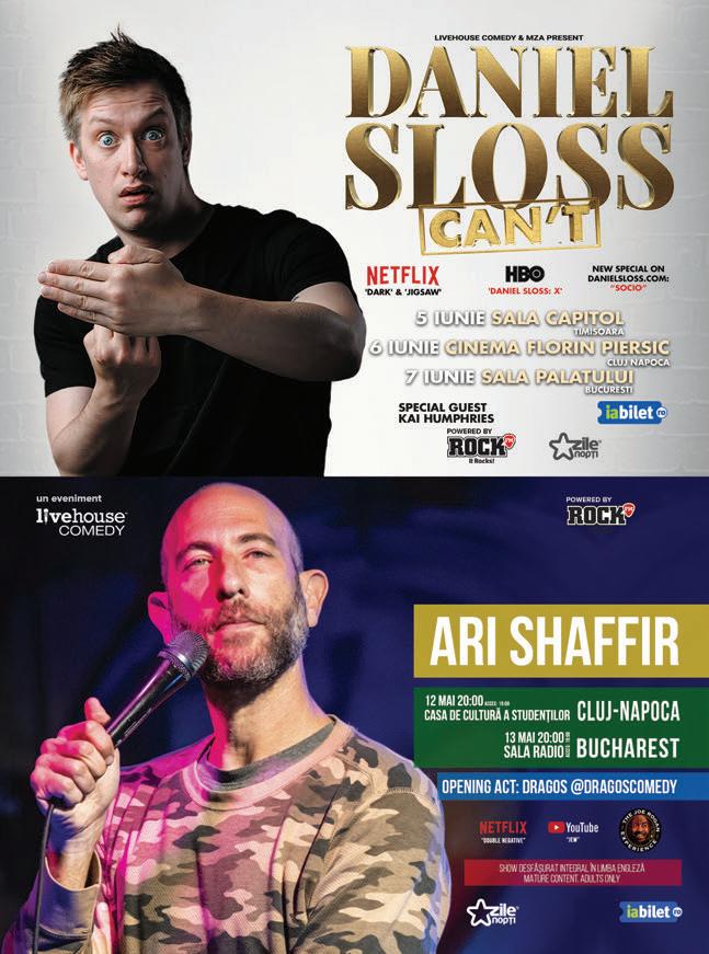Având descendenți originari din România, ARI SHAFFIR este cunoscut publicului prin special-urile şi emisiunile sale de pe Netflix, Comedy Central sau Youtube, dar și în calitate de invitat frecvent al podcasturilor The Joe Rogan Experience, Your Mom’s House al lui Tom Segura sau The Adam Carolla Show. Podcastul său, Skeptic Tank, are deja peste 10 ani și a depășit recent pragul de 500 de episoade.