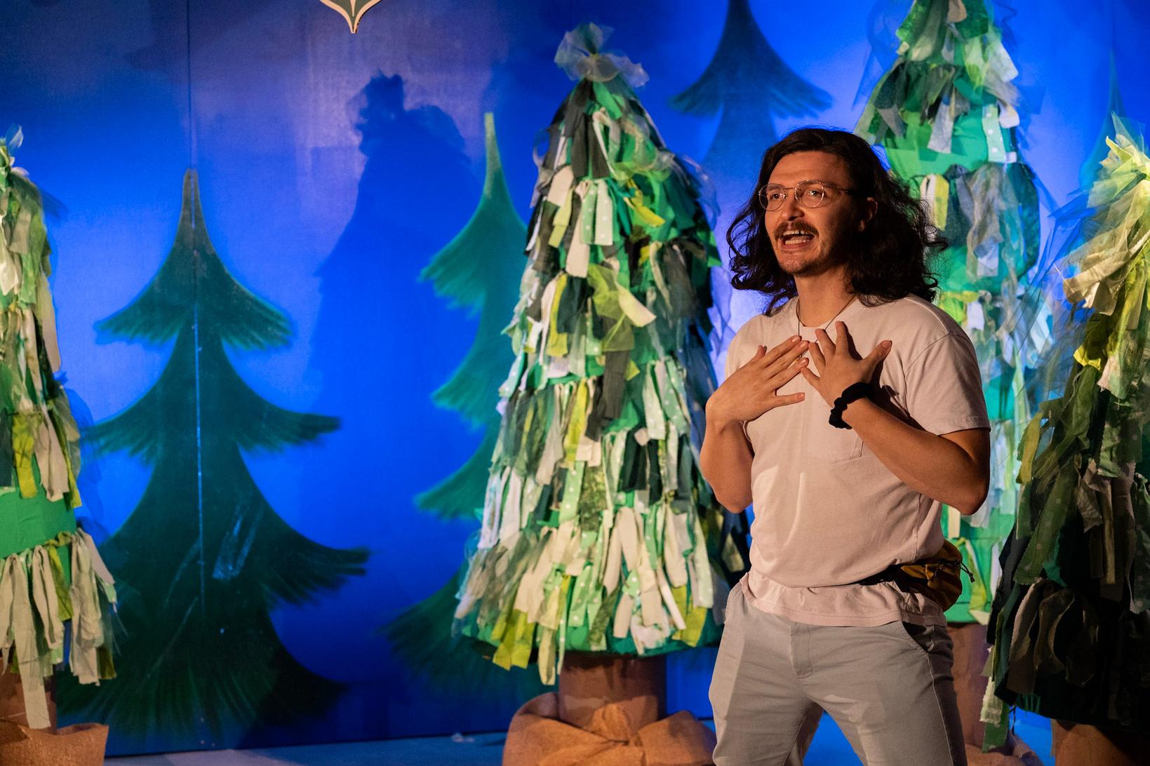 Fast-forward to December 2023 and Khristian named his own theater company, Teatro de la Tierra, which in all of its translations from Spanish means of the planet, of the dirt, of the soil, of the land, of the homeland. Teatro de la Tierra offered its second show, Beto, Beto el Abeto-a playful adaptation of Hans Christian Andersen’s The Fir Tree, tinted with memories of Nochebuena – Christmas Eve in Spanish-speaking, Latin American countries– and just the right amount of science. The project received support via funding from the City of Austin Economic Development Department through the Elevate Grant Program. Khristian is a theater artist/scholar, focusing on the relationship between environmental injustice and theater. B.A.: Human Ecology, College of the Atlantic; M.F.A.: Performance as Public Practice, UT Austin.