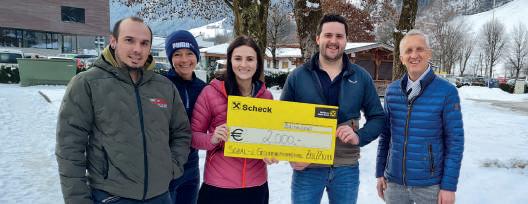 Scheckübergabe an den Sozialfonds der Gemeinde Aschau durch Katharina Bliem und Markus Schiestl.