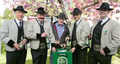 Die Führung des Regimentes Zillertal - mit Reg. Kdt. Joachim Fuchs, Reg.-Adj. Andreas Fuchs, Bat. Kdt. Martin Kammerlander, begleitet von LKdt.-Stv. Gerhard Biller - fuhr nach Garmisch, wo im Mai das nächste Alpenregionstreffen der Schützen stattfindet. Die Abordnung machte sich vor Ort ein Bild über die Anund Abreise, Aufstellung und Ablauf des Festzuges. Gleichzeitig wurde ein Pressetermin mit einer Bayrischen Zeitung wahrgenommen. Selbstverständlich kamen die Zillertaler nicht mit leeren Händen. Den Garmischer Schützen wurde eine Kiste Gauder-Bier überreicht, was sichtlich großen Anklang fand.