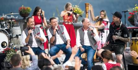Die Boarische Bris, die Zillertaler Weisenbläser mit Stefan Neussl, das Duschberger Harfenduo und die Brandenberger Stammtischsänger (v. l.)