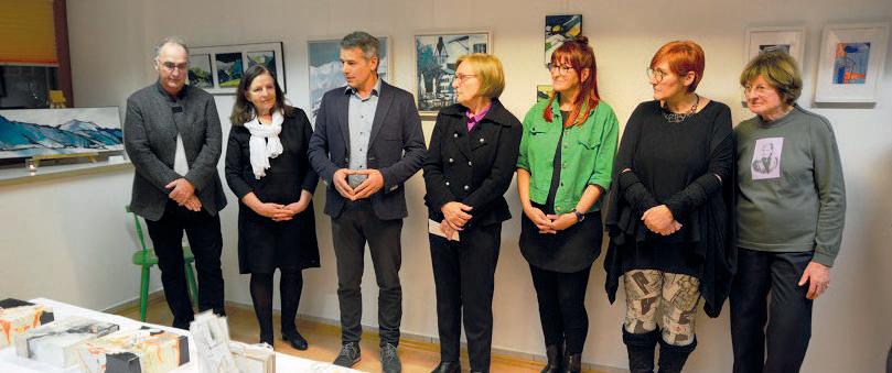 Der Eröffnungsabend der ZILLER Galerie hat allen Spaß gemacht, KünsterInnen wie Besucherinnen und Besuchern. Im Bild die KünstlerInnen Georg Klotz und Ira Klotz, Bürgermeister Franz Kolb, Obfrau Helga Madera, die Künstlerinnen Carolin Steiner, Marika Wille-Jais und Karin Byrne (v. l.)