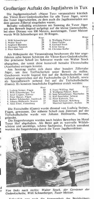 ching für Kids sein Können gesteigert hat. Erfolge haben die Zillertaler Ranggler beim Alpencupranggeln eingeheimst, die Sportschützen bei den Landesmeisterschaften Kleinkaliber. Zu einem spannenden Fußballfest, dem „1. Zillachtol Cup“, hat der SK Hippach geladen, der Ski-Club Mayrhofen wiederum zur Ehrung erfolgreicher nordischer Sportler:innen. Um nur einiges zu nennen. Prachtwetter ist ebenfalls in Stumm genutzt und die Prozession am Mariä Himmelfahrtstag durchgeführt worden. Im Seelsorgeraum Fügen –Ried-Kaltenbach – Uderns sind
