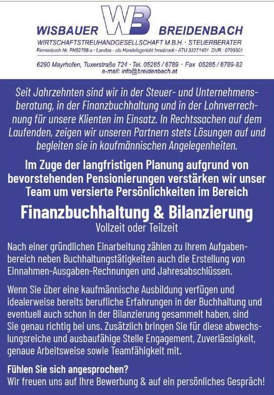 Details zur Stellenausschreibung unter www.mayrhofen.gv.at/Gemeindeamtsleiter_-in unter „OFFENE STELLEN IM GEMEINDEDIENST“