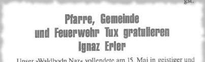 Herbstzeit ist ebenfalls die Zeit, in der viele Vereine ihre Jahreshauptversammlung abhalten. Einige Berichte dazu findest du im Innenteil dieser Ausgabe. „Die stillsta Zeit“ für Franz Wechselberger ist der November. Über den hat er so einiges aus „friagara“ Zeit zu erzählen. Bereits seit einigen Jahren hervorragende Arbeit leistet in unserem Bezirkskrankenhaus Palliativmediziner Dr. Markus Ringler, der mit seinem Team unzähligen Menschen in sehr schwierigen