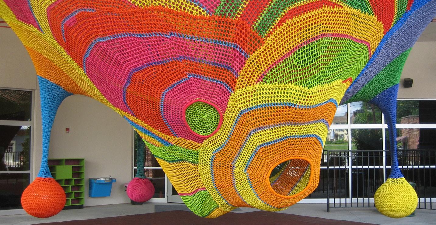 In the process of choosing an artist, finding one that displayed work with lots of vibrant color and character was crucial to me. Using the work of Toshiko Horiuchi to inspire my model, I wanted to embody the circular, curvilinear form that she creates in her pieces and create a space manipulation model that used path and mystery, while also balancing fun, playful form.
