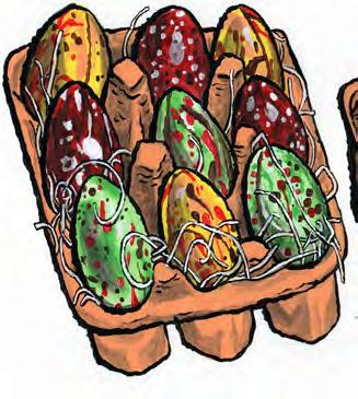 From chocolatier Knipschildt, this sturdy carton holds nine ganache-filled eggs: three yellow eggs with dark chocolate and passion fruit, three green eggs with hazelnut-milk chocolate ganache, and three red eggs with a pure and intensely dark chocolate filling. They’re decorated in a speckly, colorful design. As pretty as they are scrumptious.