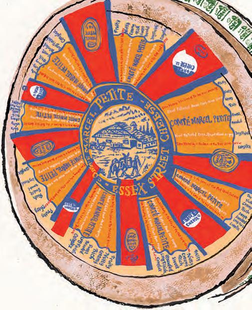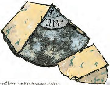 Are there wines I buy only to drink, cheeses only to eat? Yes on the wines—the really good ones, the ones that cost a precious penny— they are drinkers only. If a wine’s price is dear I will work very hard to empty it all into my glass and not relegate it to the sauté pan, where I don’t notice flavor as much. And how about cheese—are some “eating only”? Here, to me, cheese is a little more flexible than wine. I’m almost always willing to add some cheese to a dish regardless of its price. Better cheeses, more complex cheeses—even with cooking you can taste the differences. Make a macaroni and mountain cheese dish with our Comté from Fort St. Antoine and Piave (find them on pages 8–9) and it will blow you away. Try a grilled cheese with our Downeast Cheddar (page 10) and it will be a revelation.