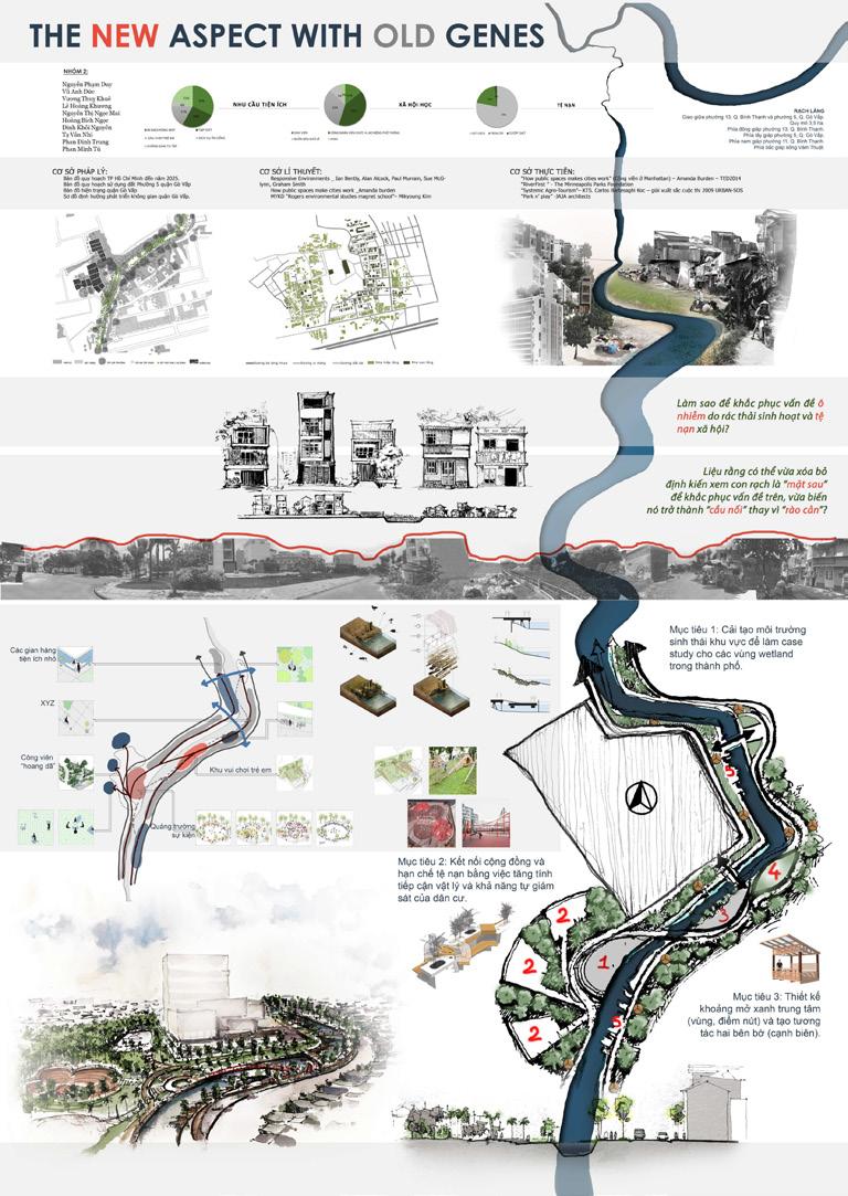 Hô-Chi-Minh-Ville est une la plus grande ville du Viêt Nam, un des plus grands centres économiques du pays. Beaucoup de grands bâtiments ont été construits, par contre la ville manque sérieusement d’espaces ouverts. Puisque je viens de Nha Trang, une ville touristique du littoral, je me suis toujours rappelé la beauté de la nature autour de Nha Trang et j’ai voulu créer les beaux espaces ouverts à Hô-ChiMinh-Ville. Par conséquent, j’avais l’idée d’utiliser les espaces ouverts comme connecteurs des bâtiments commerciaux.