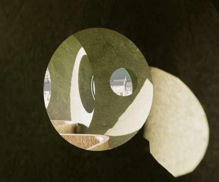 Having been inspired by the clients’ works, the main goal is to explore the sculptural quality in architecture and the interaction between pure forms and occupy-able spaces. Spatial dynamics are created by subtracting spheres strictly limited to 3 different sizes from conventional, even dull, rectangular boxes. Thanks to the height difference as the site sits on riverside hill which is very typical of Bath, there are more interactions of different rooms within the otherwise tight scheme. Where the spheres meet penetrations are naturally created to bring in views, daylight and maximise virtual contact.