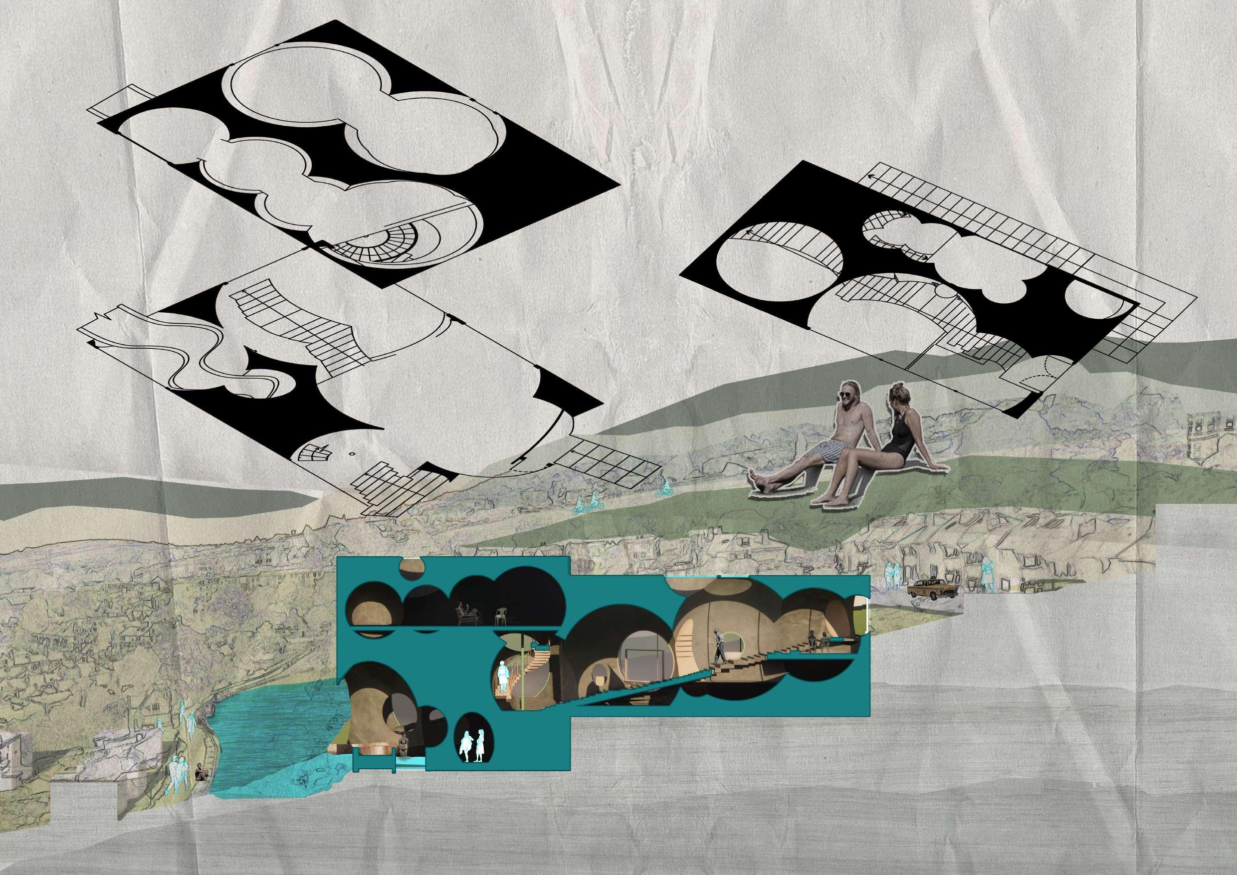 Ellipsoids are expectionally applied at the pool volume only to emphasis the different spatial quality of it from the rest of the building