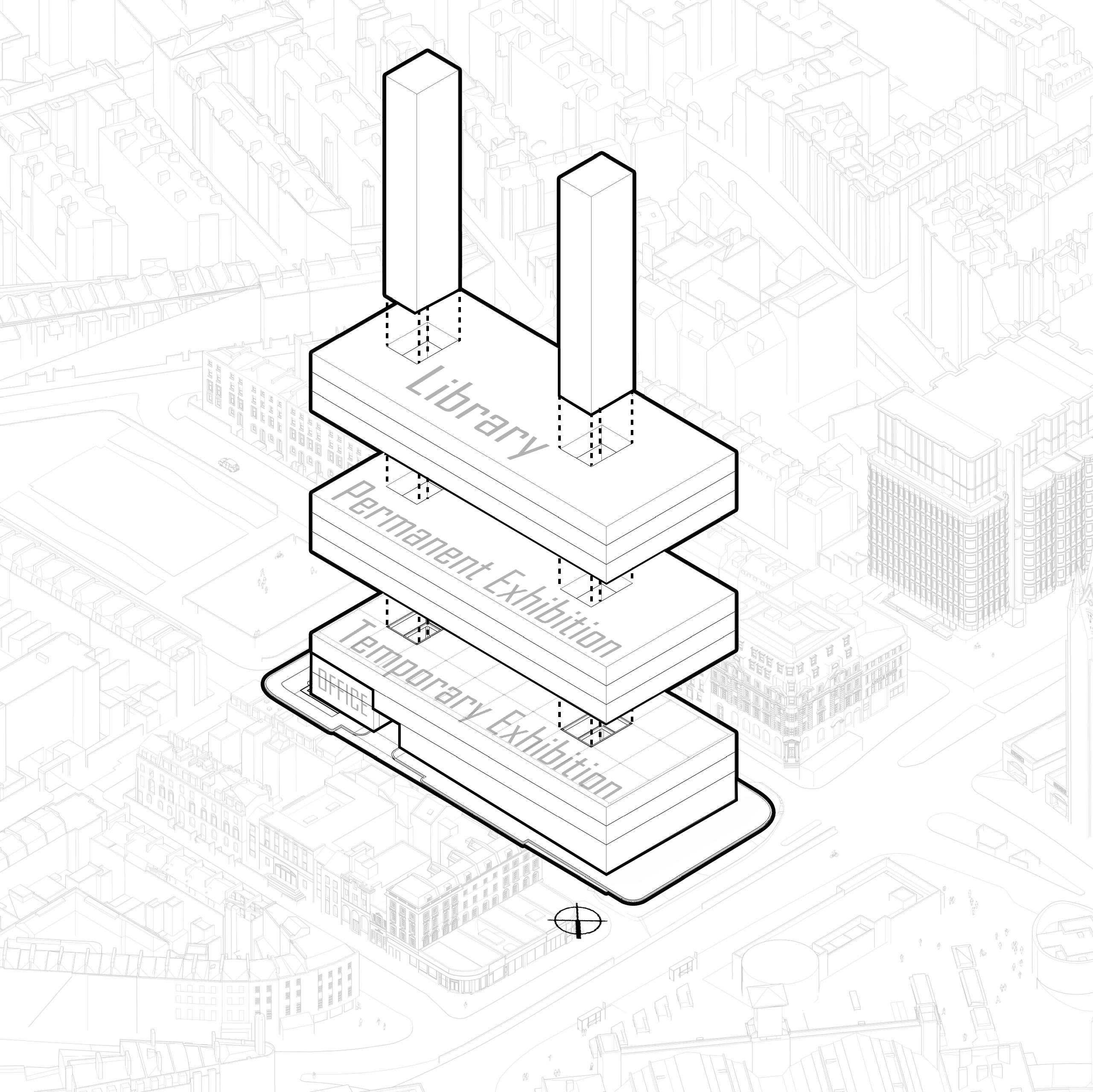 The building is about storytelling. About bring people to understand one another, by the inclusive experience it provides to all. The abundant greenery receives generous sunlight which is allowed by the intentional orientation. thorough understanding of the unethical waste pattern the fashion industry is currently running on, which is a coterminous result of behaviours from both the consumers and manufacturers, the proposed fashion design department for the adjacent Westminster Kingsway College aims to from educational perspectives. The fashion design courses dedicated to sustainability-related studies would be supported by a range of facilities within the scheme for student’s development of knowledges and understanding in the specific field in light with opportunities and venues to themselves, the central street, clothes store and exhibition hall for example, just to name a few. site geographical proximity to the existing college, the neglected Grade II Listed St. George’s Garden and dim primary street fronts, the building is also the ‘bridge’ to reactivate interactions between the three. The dominating public pathway drives the neighbourhoods towards the precious green yard. The setting up of cloth bank encourages local communities to opt to a recycle-based model to drop out the current take-make-waste cycle of fashion consumption. As suggested in the subheading, the scheme is about how fashion design could be used in an alternative way. migration is a pressing contemporary issue, it is nothing new in the history of human beings, as the earliest migration behaviours appeared 50,000 to 100,000 years ago along with our race expanded, and are still expanding in size. of us are migrants. However moving to a new country does not only mean a variation in location, it is about settling down and adapting to, a new culture and social structure, which could bring both pros and cons, and this story goes to the heart of who we are today. The museum is to be this important theme that connects us all. into the core values of the client which is the existing migration museum who does not have a permanent home yet, the idea of an ascending journey following 3 major steps is identified - ‘who we are‘,’where we are from’, and ‘where are we going‘. Whilst the dominating outdoor staircase the building which also serves the main circulation route, visually and physically connects the front and rear of the site which includes the busy international station as well as Argyle square. The museum is articulated in a way that when visitors pick up their stairs they naturally go on building is about storytelling. About bring people to understand one another, by the inclusive experience it provides to all. The abundant greenery receives generous sunlight which is allowed by the intentional orientation. understanding of the unethical waste pattern the fashion industry is currently running on, which is a coterminous result of behaviours from both the consumers and manufacturers, the proposed fashion design department for the adjacent Westminster Kingsway College aims to shape the educational perspectives. The fashion design courses dedicated to sustainability-related studies would be supported by a range of facilities within the scheme for student’s development of knowledges and understanding in the specific field in light with opportunities and venues to express the central street, clothes store and exhibition hall for example, just to name a few. geographical proximity to the existing college, the neglected Grade II Listed St. George’s Garden and dim primary street fronts, the building is also the ‘bridge’ to reactivate interactions between the three. The dominating public pathway drives the neighbourhoods towards the precious yard. The setting up of cloth bank encourages local communities to opt to a recycle-based model to drop out the current take-make-waste cycle of fashion consumption. As suggested in the subheading, the scheme is about how fashion design could be used in an alternative way. is a pressing contemporary issue, it is nothing new in the history of human beings, as the earliest migration behaviours appeared 50,000 to 100,000 years ago along with our race expanded, and are still expanding in size. are migrants. However moving to a new country does not only mean a variation in location, it is about settling down and adapting to, a new culture and social structure, which could important theme that connects us all. the core values of the client which is the existing migration museum who does not have a permanent building which also serves the main circulation route, visually building is about storytelling. About