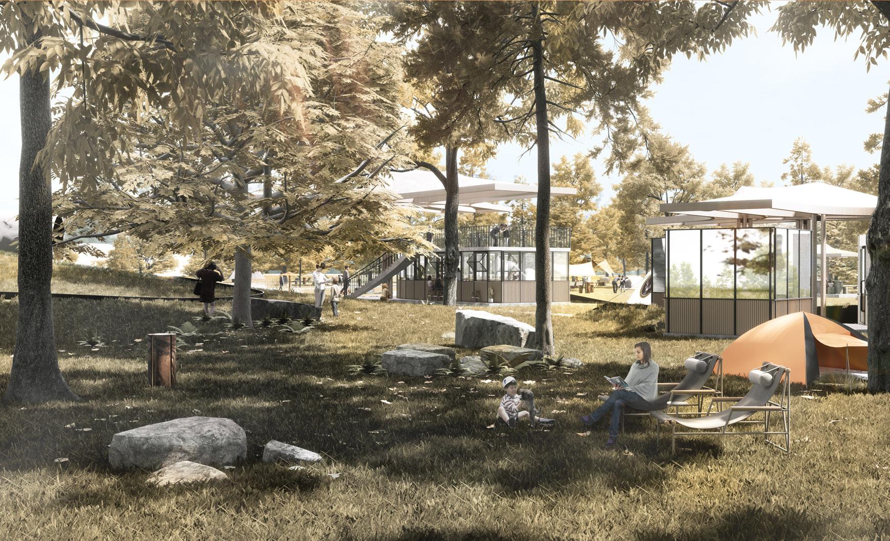 People living in cities may already be bored with the city's architecture (concrete boxes). Throughout history, the fundamental purpose of the house is to provide shelter for people and to create a certain distance from nature. But as this design, we hope to provide a possibility to make nature and the house no longer opposite. Nature is a house, and a house is nature. Provide a place where visitors can maximize the tranquility of nature, enjoy the most essential fun of nature, and redefine the meaning of life. Accept nature in yoga, walk into nature and relax.