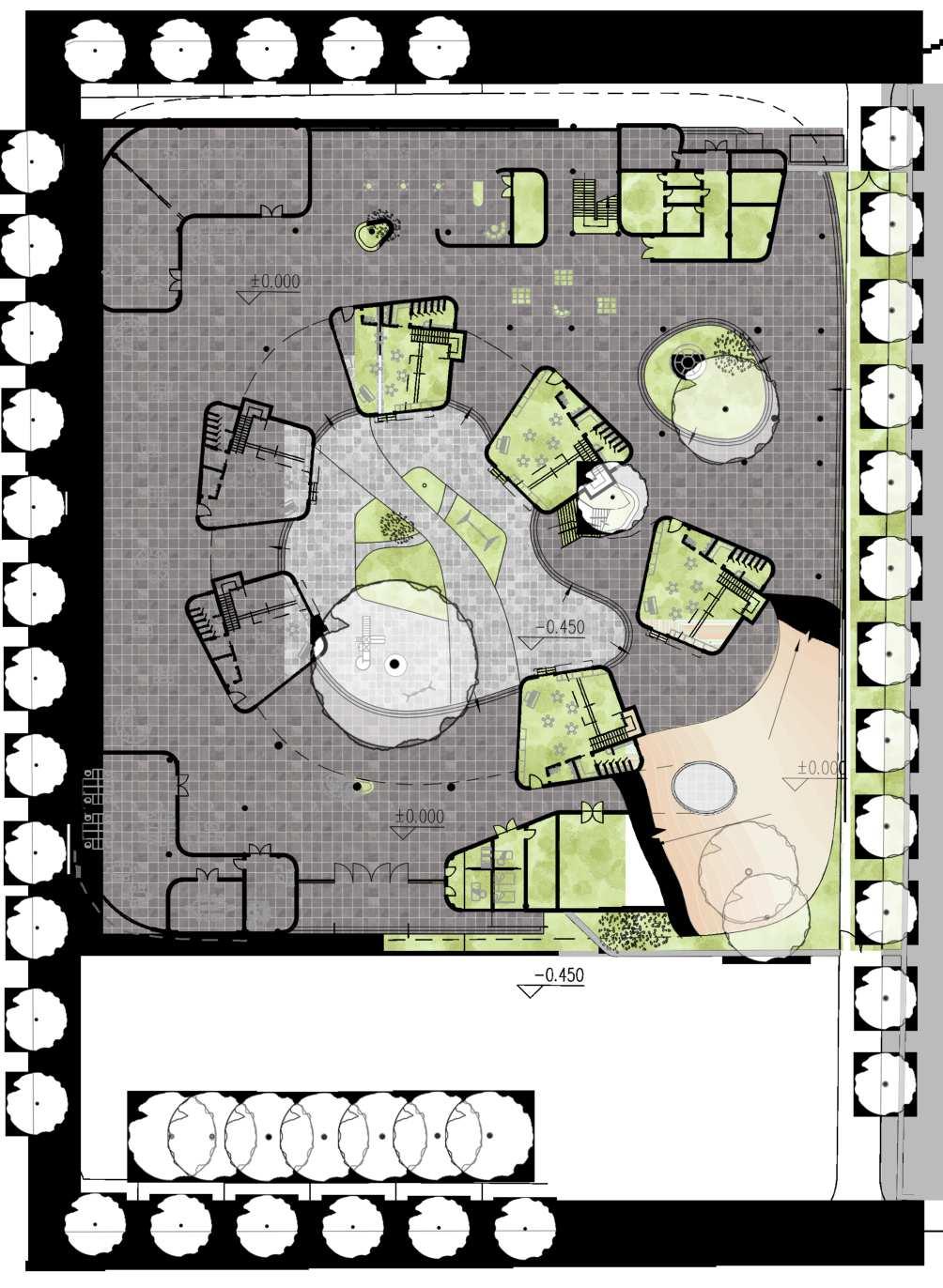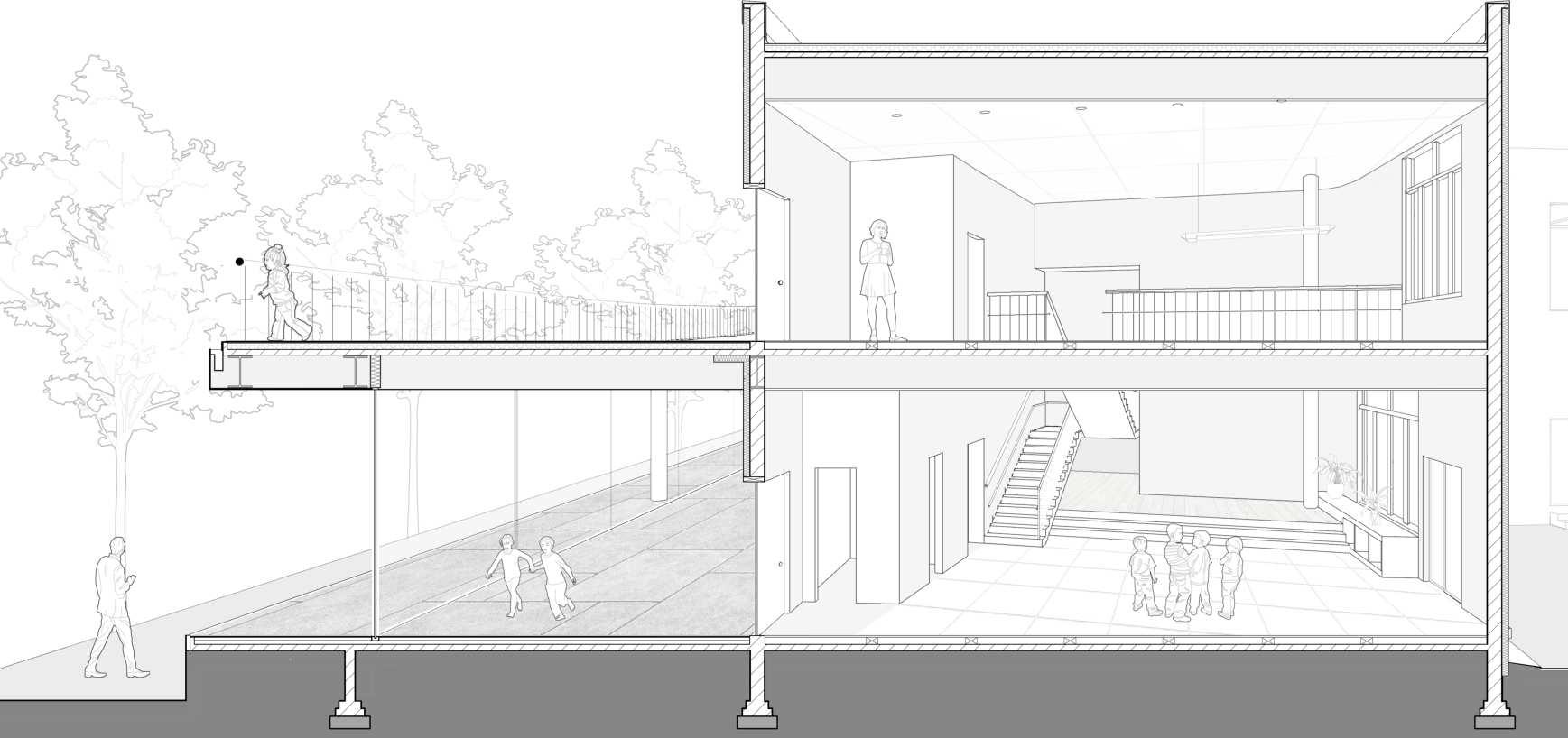 通过创建一个让孩子们观察和学习周围社区 的幼儿园,该设计将生动的社区景观变成了 下一代引人入胜的教科书。