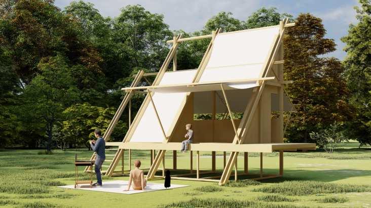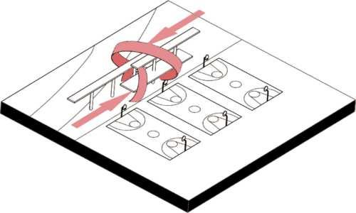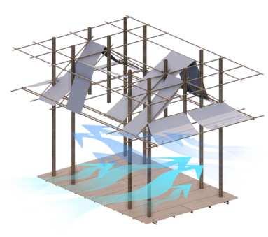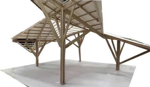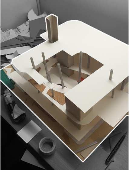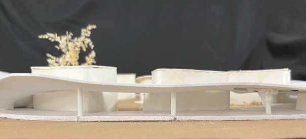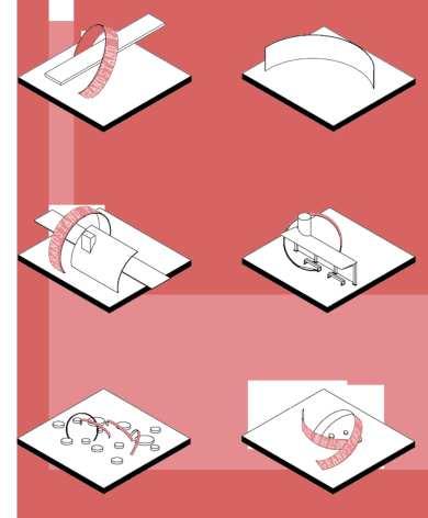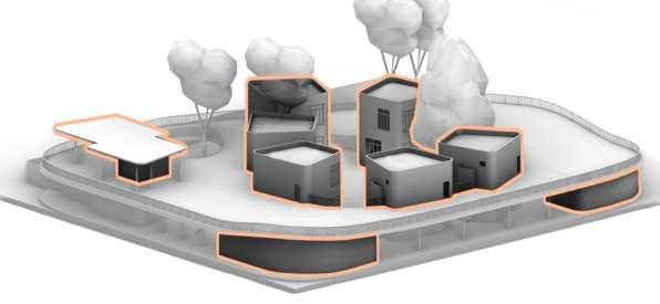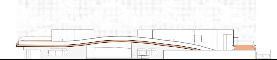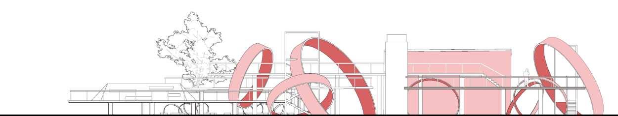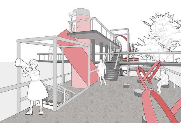 起伏的平台:原型经过进一步迭代,创建了 起伏的平台,形成了幼儿园内的地形,并在 各个楼层之间流动。