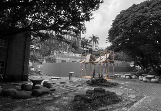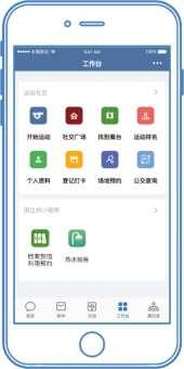 基于微信的校园应用在中国大学生生活中使用 广泛。我们设计了一个插件应用,可以接入原 有的大学应用,就像我们的看台介入城市空间 一样。它与看台公园一起充当数字桥梁。