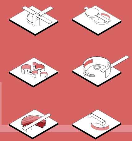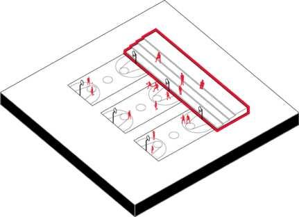 3. 环形元素固定在条形看台上,作为设计的突 出符号。 1 2 3 4