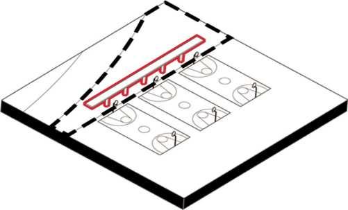 第一步:找到运动场旁边的剩余空间。在这一 侧放置一个线性支架单元。
