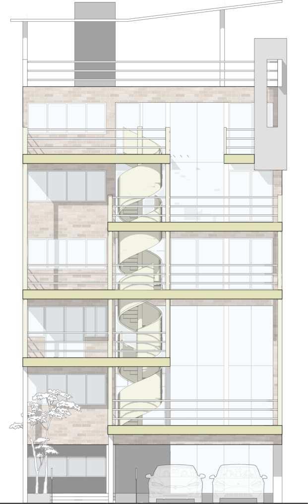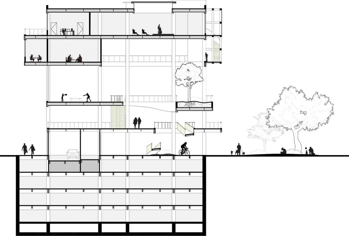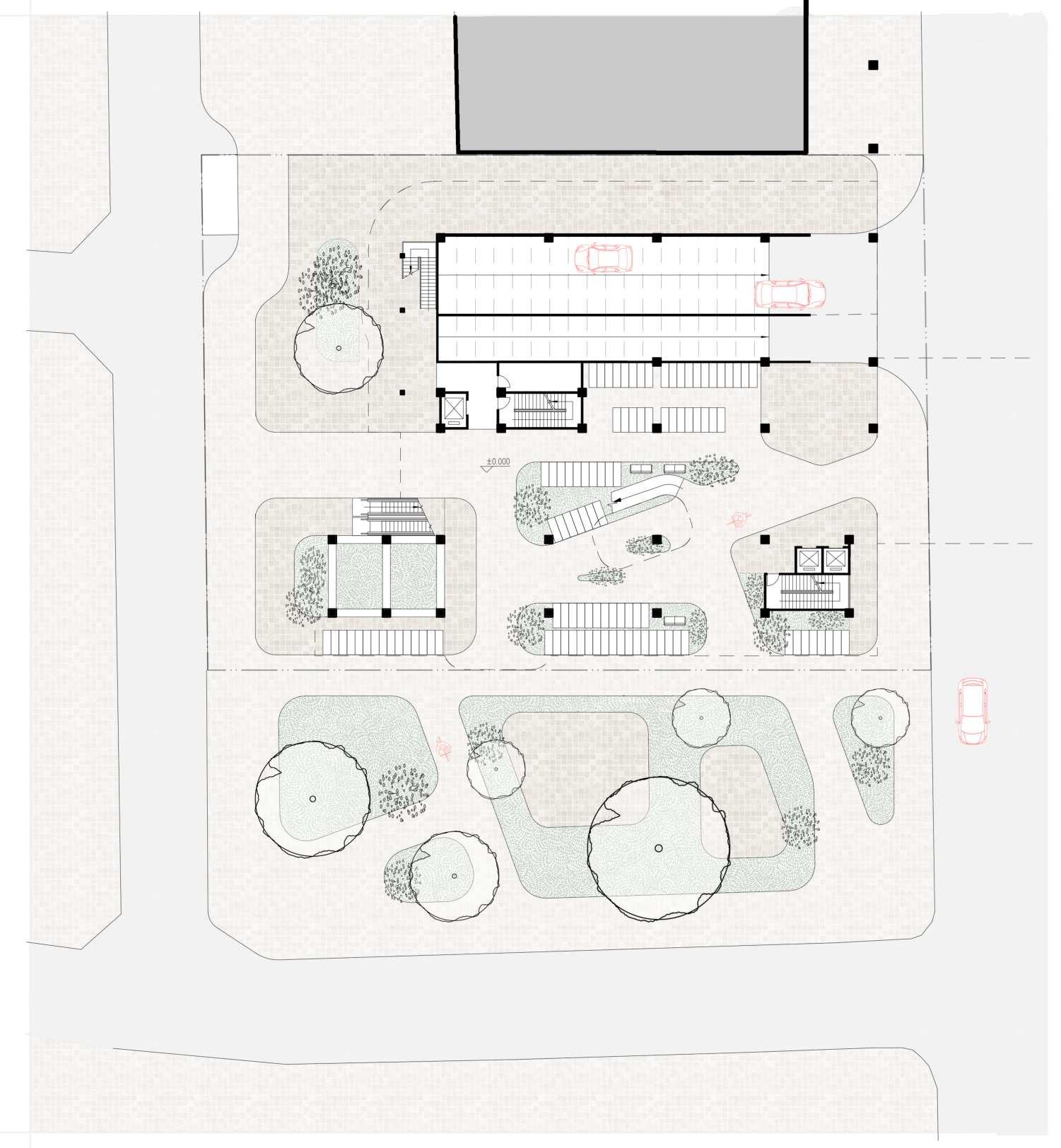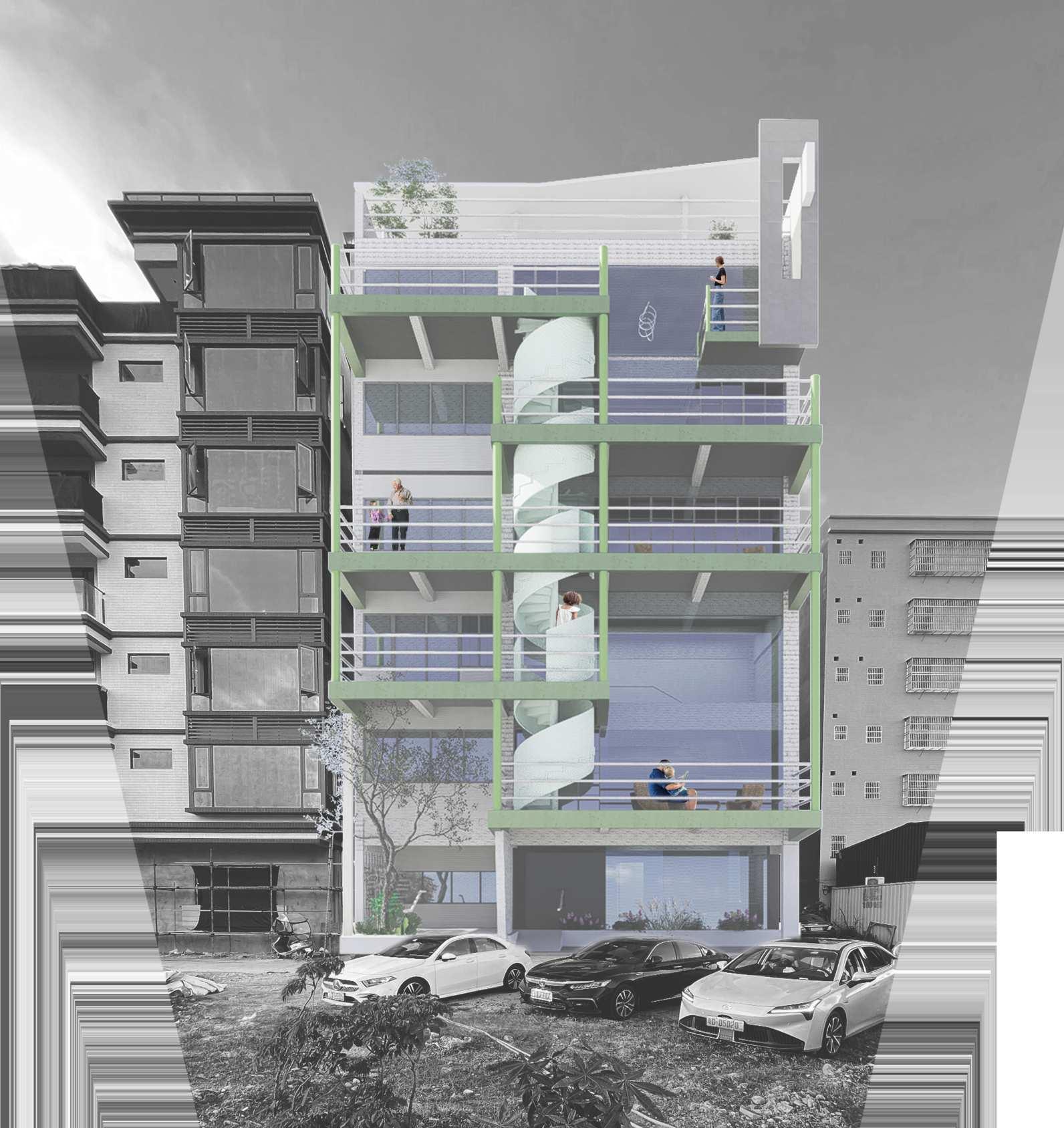该设计是位于台北市中心的停车场综合体,包括 庇护就业中心和社区中心。它也是台北捷运科技 大楼站的入口。