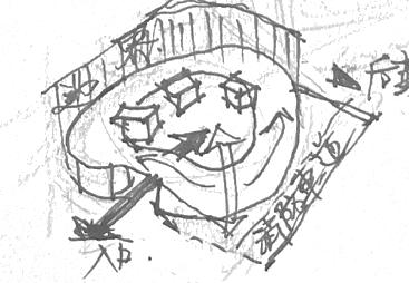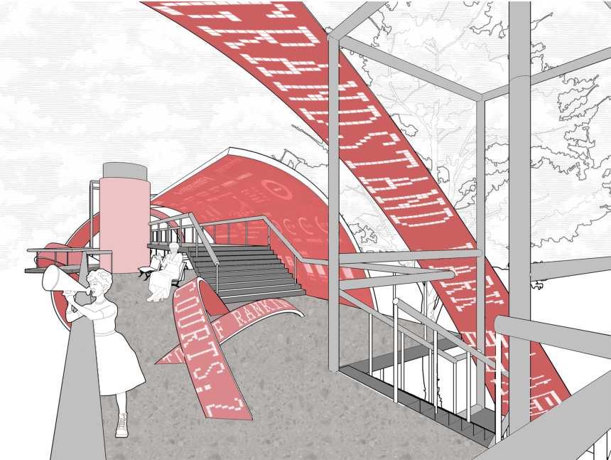 环形屏风。还有一个半圆 形棚子,上面可能装有屏 幕。
